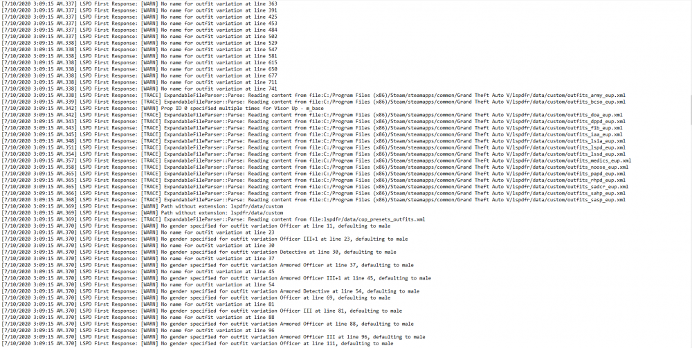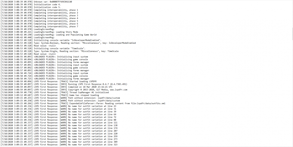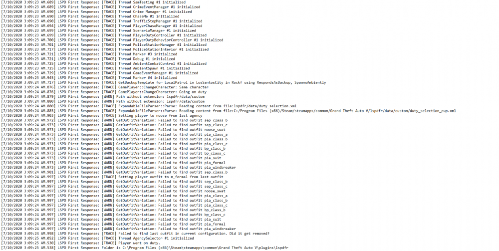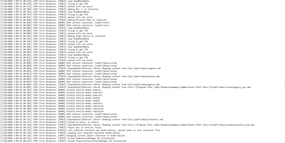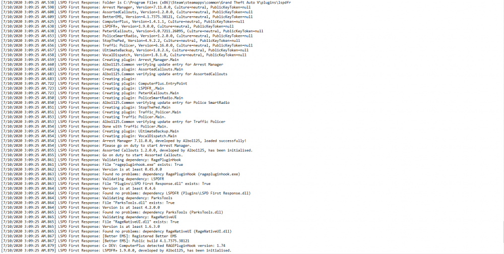 3. I recently got back into LSPDFR, and I got some plugins. Ultimate Backup, Assorted Call outs, Traffic Policer, mostly all of albo1125's plugins. I deleted Ultimate Backup because apparently it causes issues. But even then nothing works. I have both the Forced Windowed mode, and Borderless Window checked, and still it doesn't change anything. I've been trying to solve this issue all day. Nothing is working and it is quite annoying. I've put a bunch of screenshots of the entire log from one of my attempts after I had deleted Ultimate Backup. I have also tried reinstalling Ultimate Backup. I've also uploaded pictures of my plugins folder, and the plugins that are in plugins>LSPDFR. I really need help.