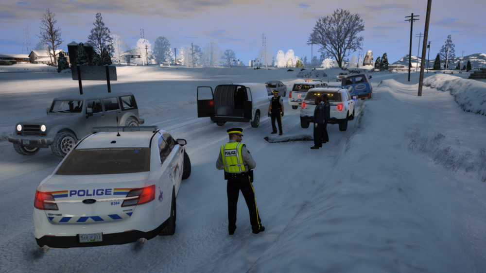 The Ludendorff RCMP stopped a vehicle involved in an attempted robbery. The driver jumped out and opened fire, prompting an officer to discharge his rifle, killing the suspect. No other injuries occurred, and 3 suspects were taken into custody following a very short pursuit lasting only a few meters.- Your best LSPDFR 0.4 screenshots?