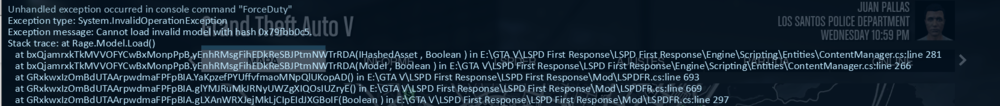 lspdfr plugin crashes when doing the forceduty command RagePluginHook.log