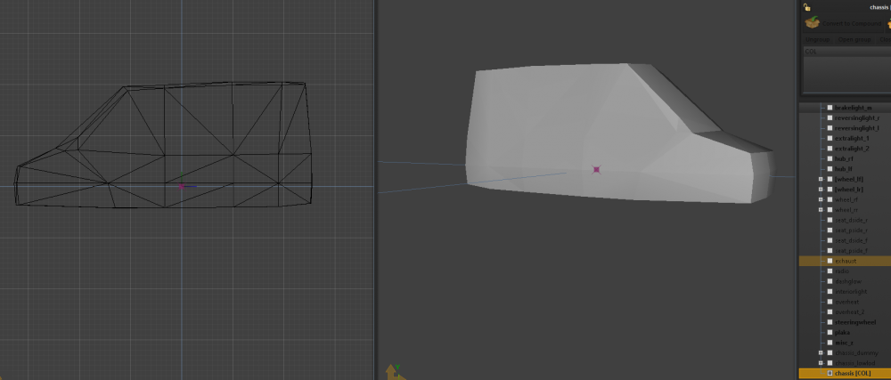 Hello guys, I converted a car with ZModeller 3. Don't worry my ZModel is licensed. Car wheels are spawning wrong position in game. Dummies are in true positions in zModel but ingame is not in the right position. Where i am doing wrong? PHOTOS: