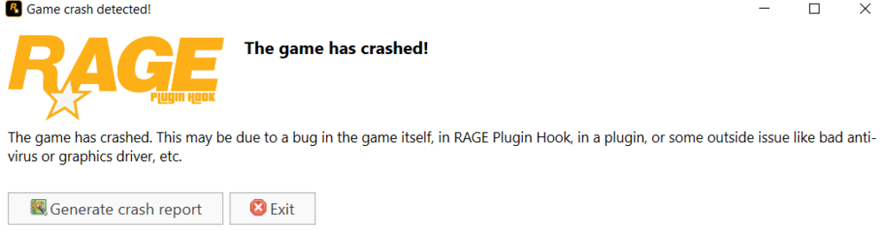 Hi! Yesterday I could play lspdfr normally but today when I run rage plugin hook, after loading the game it crashes and I get this message. If you can help me that would be really nice ^^! (sorry for my surely bad english, i'm french)