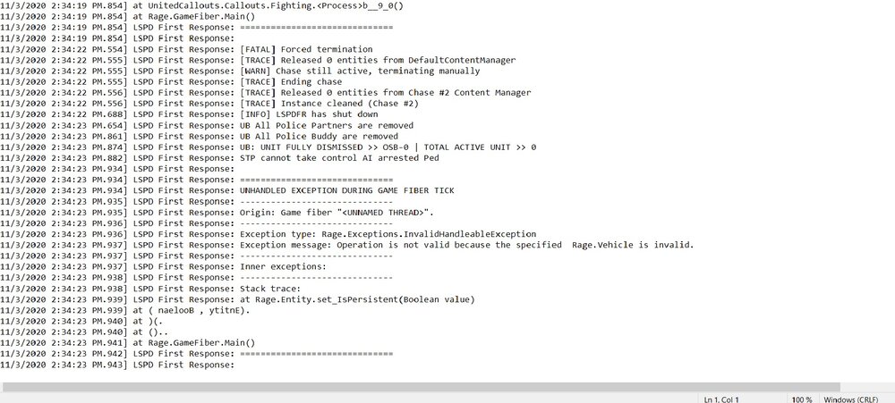 7. Yes the crashes was, i can say, daily but only once on first game start and often when i finished the call (arrested criminal) then i just closed the Game and started again and all was ok. But now last days its seems to be ok because the Game didn't crashed since the last (this one reported) crash. Or maybe some RPH update fixed it 🙂. Its only strange becouse the crash dont turn the whole gta off, its only like the lspdfr turns itself off.