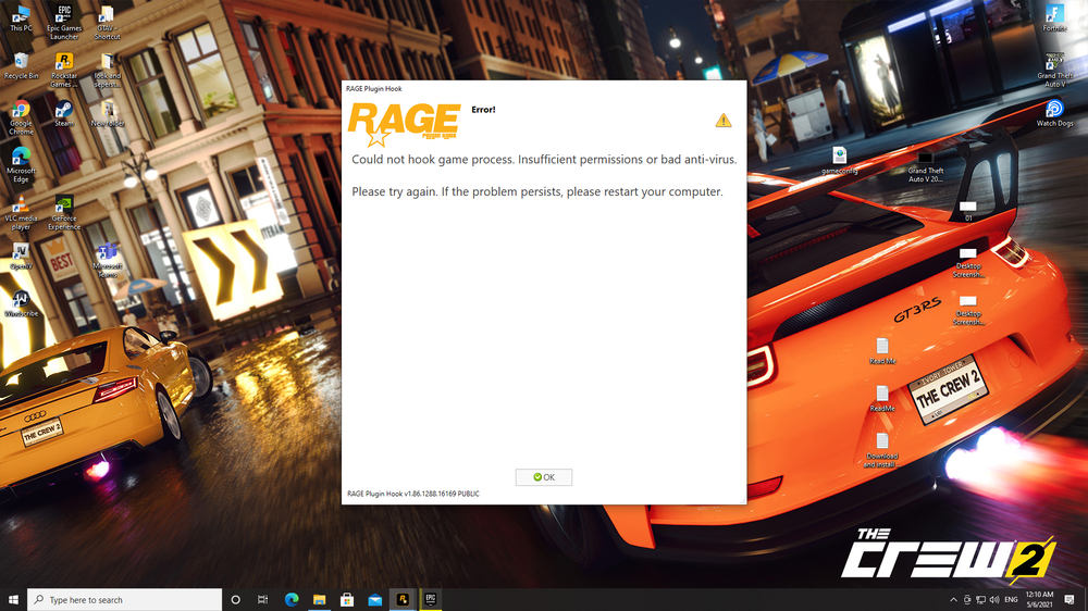 The reinstallation didn't worked and also I had made the GTAV folder an exception to your antivirus & Windows Defender then try try launching rage after loading the story mode but the game closes without any error message