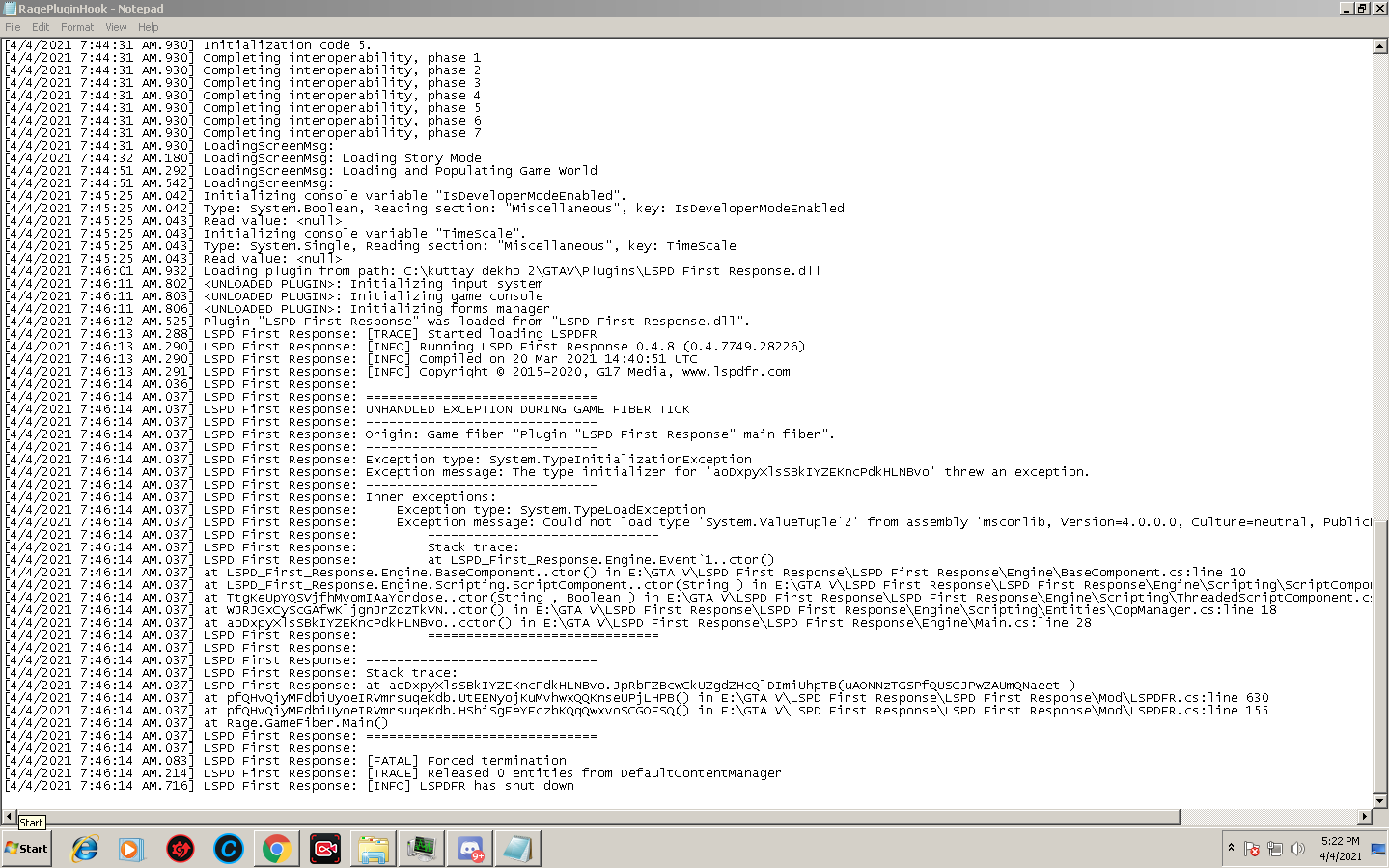 1. this is my log please help me out and yes im missing lsdpr file in plugins and i dont know what to do so please help me out