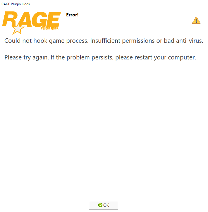 Could not hook game process. Insufficient permissions or bad anti-virus. Please try again. If the problem persists, please restart your computer.
