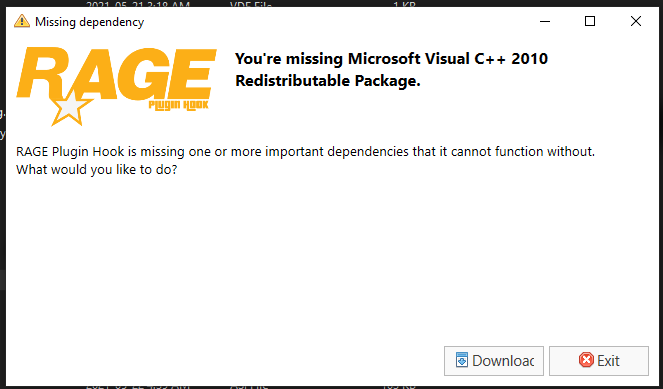I did everything step by step and i try running the rage plugin and it pops this up and i click download and then it gives me an error code.