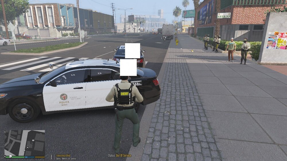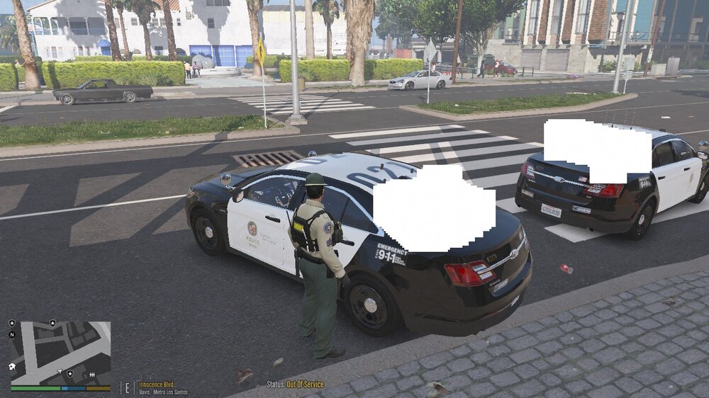 white pixel censor boxes covering police vehicles and trains ect.