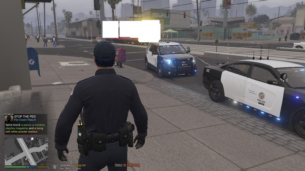 pixel censor boxes covering police vehicles and trains ect.