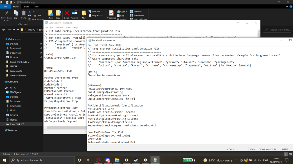 I just had to put the UltimateBackup localisation file inside the UltimateBackup folder at \Grand Theft Auto V\plugins\LSPDFR\UltimateBackup