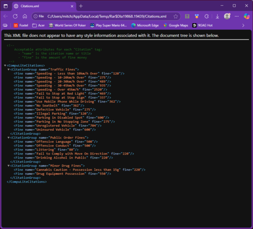 I wanted a simplified version of charges and fines so made my own based on NSWPF