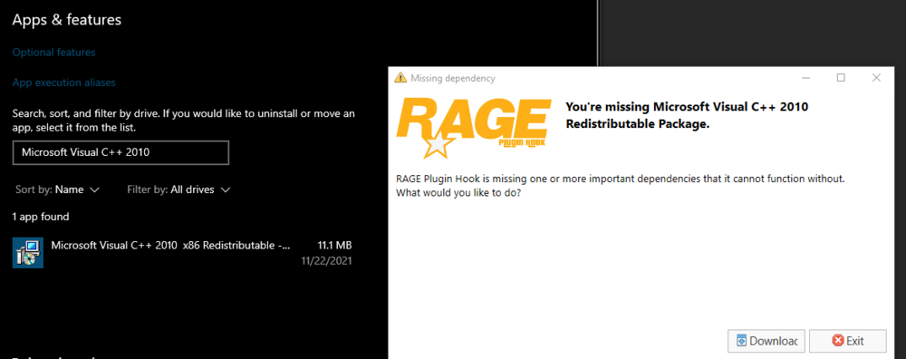 So I downloaded and installed LSPDFR and now when i try and start it with rage hook plugin it keep saying im missing microsoft C++ 2010 package, but i have downloaded it and installed it. What should i do?