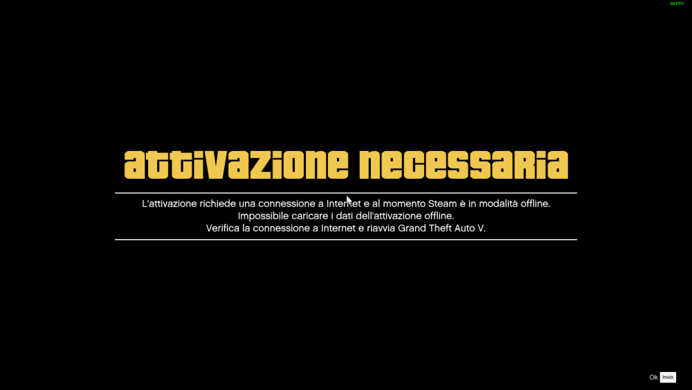 Activation requires an internet connection and Steam is currently in offline mode. Unable to load offline activation data. Check your internet connection and restart Grand Theft Auto.