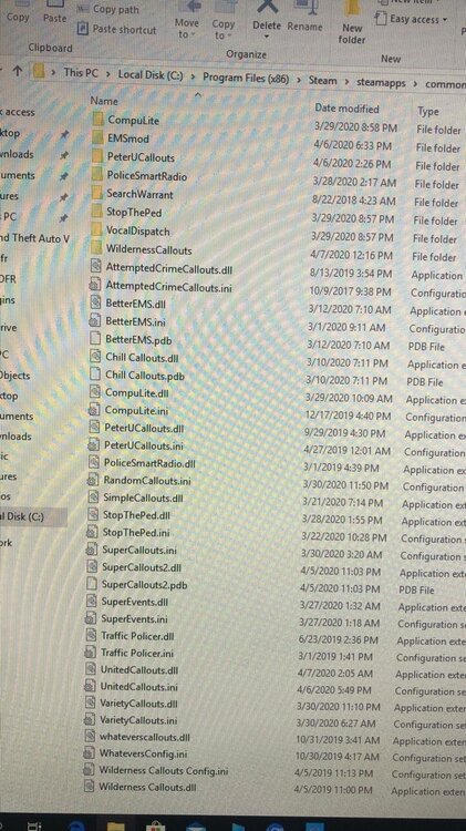 ChillCallout & CompuLite & EMSmod & PeterUCallout PoliceSmartRadio & SearchWarrant & StopThePed & WildernessCallout & whateverscallouts & VarietyCallouts & UnitedCallouts & SuperEvents & SuperCallouts & SimpleCallouts & RandomCallouts & AttemptedCrimeCallouts