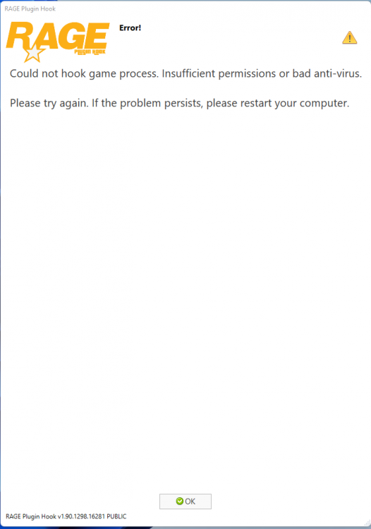 For the last hour i have tried to play lspdfr, But i constantly get the error "could not hook game process" within the first 5 seconds of gta starting.
