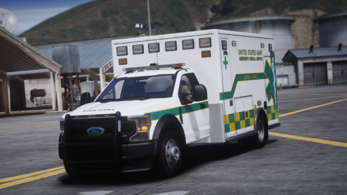 Vehicle [LSPDFR/NON-ELS]: https://www.lcpdfr.com/downloads/gta5mods/vehiclemodels/45737-2020-ems-mini-pack-reflective-lods-tunning-non-els/ U.S. Army F550 Ambulance Skin by Yoshi_HD This Livery includes: 1x United States Army Ambulance [ for EMSf550ambo2 ] (*only thing missing on the livery is the base logo, so you can add the logo of your base) I also changed the red cross to an green cross for safety reasons Made it for an fun project but I guess its good enough to share it with you guys 😉 - Dalmatian Ped [ Add-on / Replace ] [Fire K9]