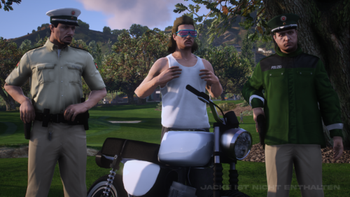 Im Pack ist gibt es Skins für einen Pullover, eine Strickjacke, ein Langarm und Kurzarm Hemd, eine Mütze in weiß und grün, eine Mütze eine beige Hose und Schulterklappen, vom Polizeikommissar bis zum Ersten Polizeihauptkommissar.