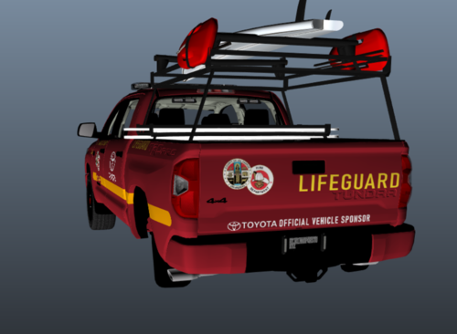 Based on the real FD Lifeguards of Venice Beach, I come to you with another real but lore friendly texture for your LSPDFR world. I am yet again surprised no one has made this before me, but I guess thats why I am here. Hope you guys can enjoy using it as much as I enjoyed making it. Heres a link to the original model to use this texture with by ZeakorDesigns: https://www.gta5-mods.com/vehicles/non-els-2019-toyota-tundra-life-guard -