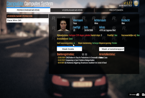 EDITED: DE UPDATE IS INMIDDELS LIVE! Nieuw in deze update: - Overzichtelijker gemaakt. - Dubbele Charges/Citations verwijderd. - Op wildlife citations na is alles Nederlands nu. - Sommige boetes/misdrijven kunnen nu nog missen maar worden z.s.m toegevoegd! Dit is de Nederlandse versie van Compulite gemaakt door: Bejoijo - www.bejoijo.com/post/compulite/ Met deze Nederlandse versie heb je meer Citations (boetes) en meer Arrestatierapport opties (charges). Installatie: 1. Download eerst de originele Compulite van Bejoijo op: www.bejoijo.com/post/compulite 2. Vervang het mapje Compulite van de originele download voor deze nieuwe download. Je hebt nu een Nederlandse versie van Compulite by Bejoijo met meer opties! Voor vragen of Nederlandse LSPDFR gezelschap, word lid van onze Discord server: discord.gg/sXfTu5Dn63 -