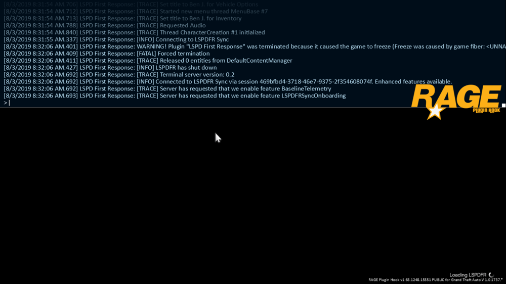 So this is my first time using lspdfr since 0.41. Now when I first fired up my game I got a normal rage startup but after that there was a black loading screen saying loading lspdfr and then I received some crazy error saying something about the game crashed. If someone could help me it would mean a lot. 😀
