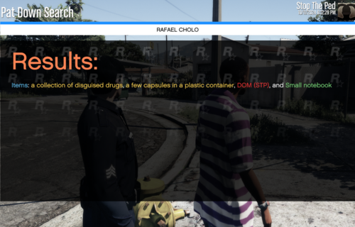 Stop the Ped: Modified Pat Down Items is a modification of the "PatDownItems.xml" file in the STP folder, adding more items you can find when patting someone down.