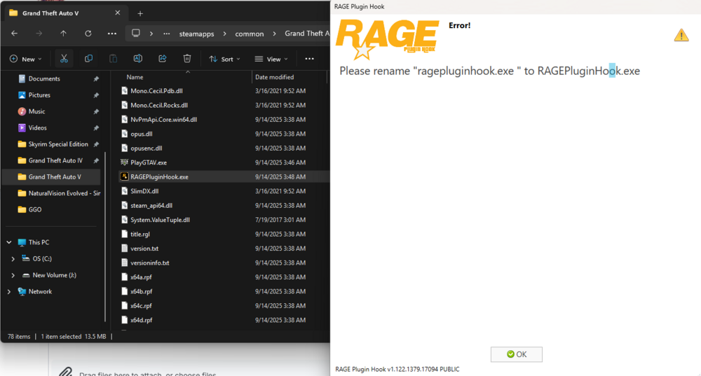 6. Installed newest version of lspdfr on a clean install of gta and get a error please rename ragepliluginhook to RagepluginHook. Although it already is.ive tried reinstalling both gta v and lspdfr and manually installing lspdfr https://s3-attachments.int-cdn.lcpdfrusercontent.com/monthly_2020_09/368796820_epicerror.PNG.9aa3fdf039f908e69639c127cd8c410c.PNG