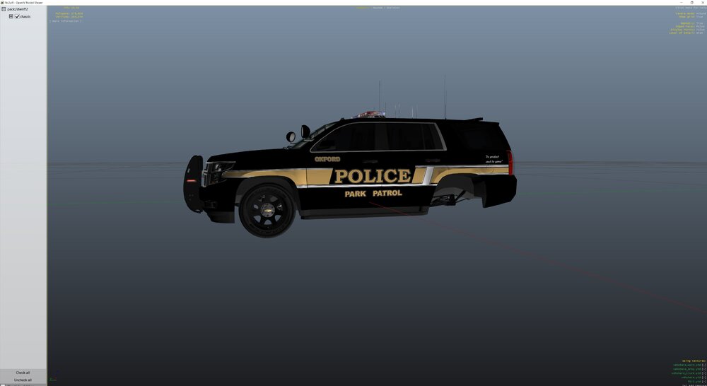 Oxford Police Tahoe Pack I used the hurk's CHP Tahoe. best of luck to you.